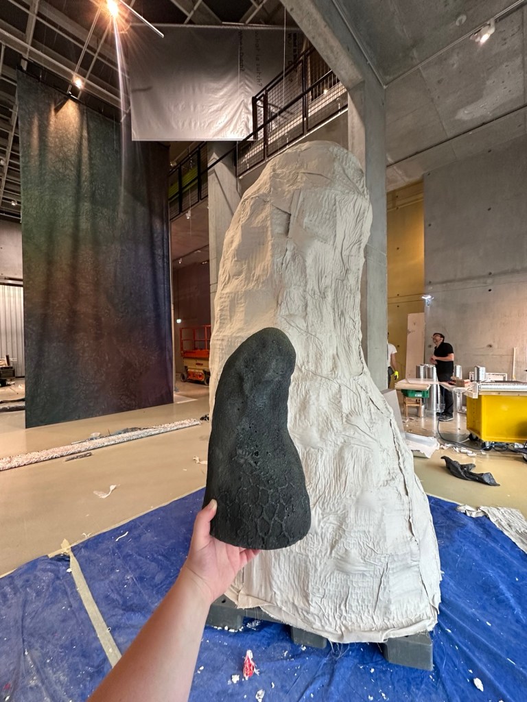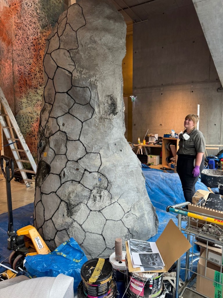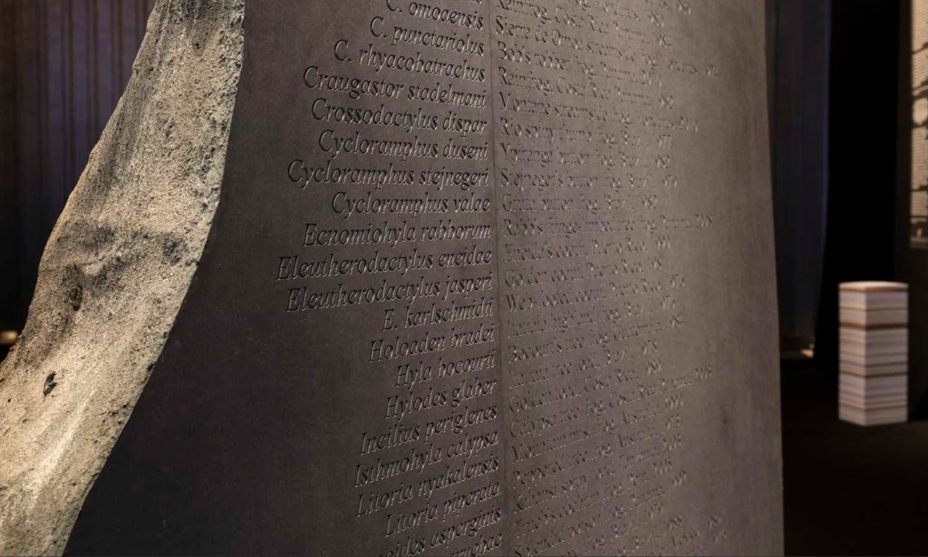 Kikkerduim: Perforated Protection: Mysterious Worldwide Frog Extinctions (2025) Dit project had als doel het visueel onderzoeken van de tragedie die amfibieën de afgelopen decennia teisterde door een minuscule schimmel, een die uitgroeide tot de ergste invasieve ziekte aller tijden. Met als gevolg de uitroeiing van meer dan 90 kikkersoorten. De kunstwerken zijn gemaakt door de Zweedse kunstenaar Oscar Furbacken in samenwerking met de Australische onderzoekers Lee Berger, Danielle Wallace en Jamie Voyles. Mijn taak was om dit gigantische sculptuur van drie meter hoog te realiseren. Het moest er van het ene aanzicht als een realistische uitgedroogde kikkerduim uitzien en van het andere aanzicht als een grafsteen met de namen van alle uitgestorven kikkersoorten. De overgang van grafsteen naar fossiel was het belangrijkst, als een soort geode moest het aannemelijk natuurlijk zijn.